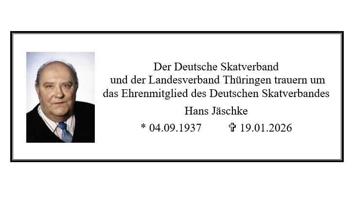 Wir trauern um Hans Jäschke Ehrenmitglied des Deutschen Skatverbandes e.V.